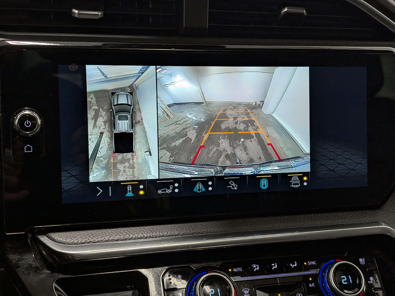 • Caméra de vue de la caisse dans le feu de freinage central surélevé permettant de voir la caisse, affichage de l'image à l'écran du système d'infodivertissement, comprend préparation pour deux caméras de remorque (Comprend préparation pour caméra de vue de la remorque et lignes de guidage de remorque.)